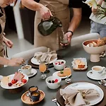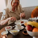 A continental breakfast is offered in the garden.